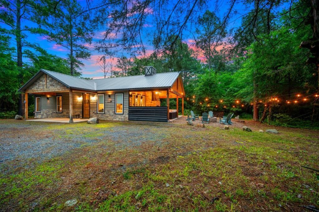 Welcome to Echo Lodge, a beautifully crafted 2021 cabin nestled on 1.31 wooded acres in the highly sought-after Hochatown area of Broken Bow, Oklahoma. Ideally situated near popular attractions, scenic hiking trails, local dining, and outdoor recreation, this property offers both convenience and a peaceful retreat setting. Located just minutes from Choctaw Landing Casino Resort, it presents an excellent opportunity for a vacation home or investment property.Surrounded by mature pine trees, the cabin provides natural shade and privacy while embracing the beauty of its wooded surroundings. Inside, the thoughtfully designed layout features 2 spacious bedrooms and 2 full bathrooms. The primary suite includes a king-sized bed, en-suite bathroom, and walk-in closet, while the secondary bedroom offers a queen-sized bed with convenient access to a nearby full bath with tub/shower combination.The open-concept living area is filled with natural light and offers ample seating, creating a comfortable space for gathering and relaxation. The kitchen is equipped with stainless steel appliances, a quartz island, and generous workspace, ideal for both everyday use and entertaining.Outdoor living is a highlight of this property, featuring a covered patio with seating, a stone wood-burning fireplace, and a charcoal grill. A private hot tub is positioned nearby, creating a relaxing environment that flows seamlessly to the fire pit area tucked among the trees, perfect for enjoying evenings under the stars.The property includes a large U-shaped gravel driveway, providing ample parking space for vehicles, boats, or recreational equipment. Access is via a gravel and dirt road, enhancing the secluded cabin experience while remaining close to area amenities.